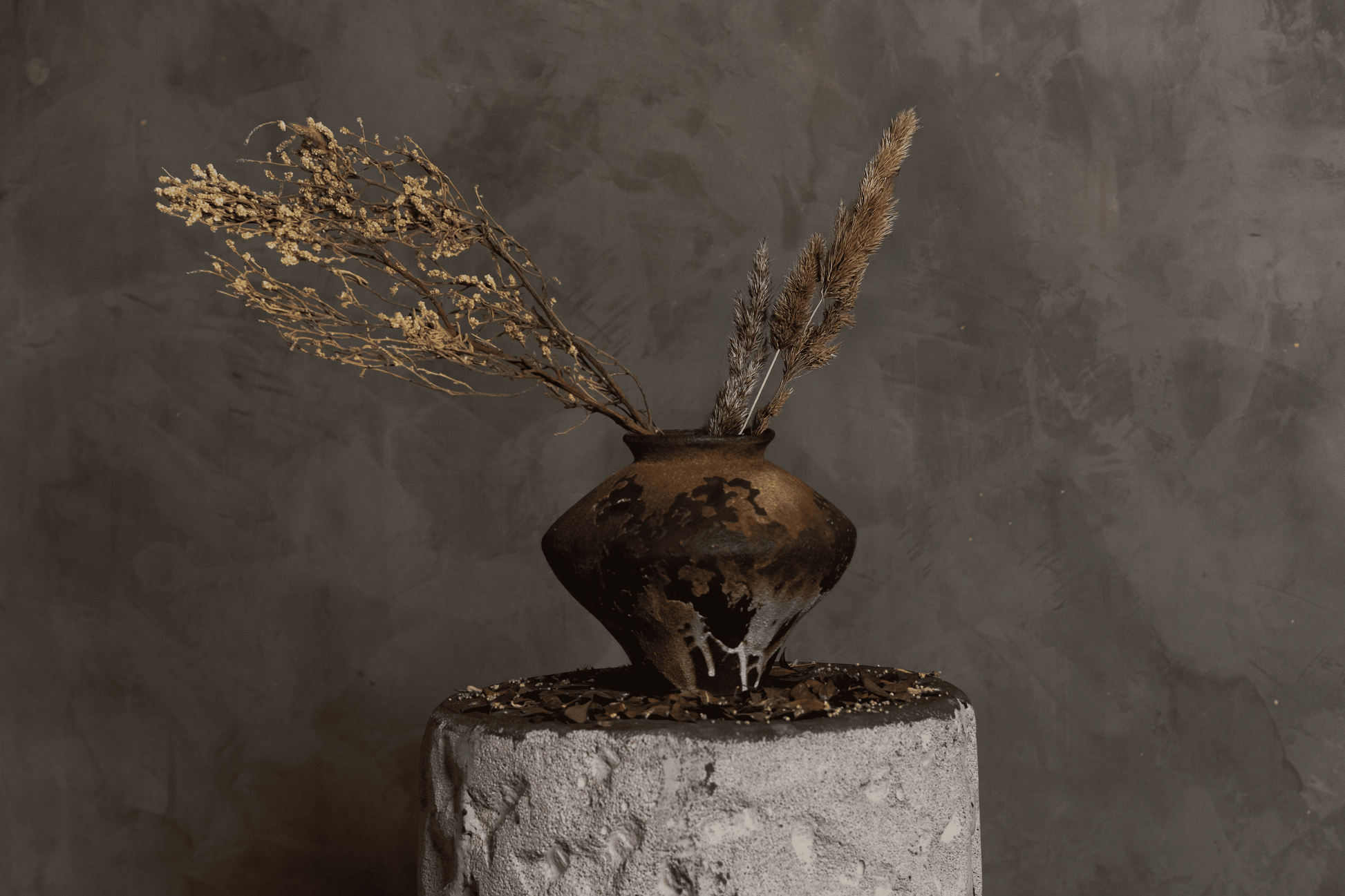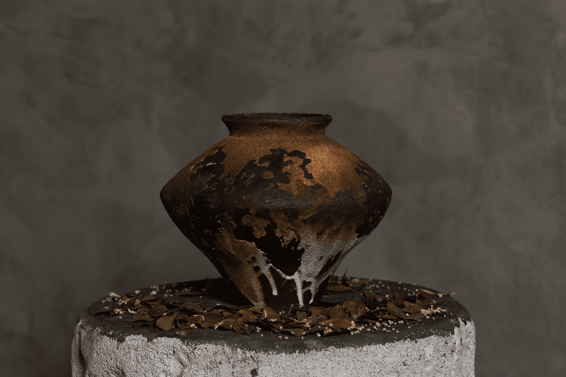 Design Inspiration: Named after "Gaia,” the ancient Greek goddess symbolizing the earth, this vase embodies the raw, grounding essence of nature. The deep, earthy tones and organic textures mimic the rugged beauty of the planet's soil and rock formations, making it a celebration of life, resilience, and creation. The smaller, rounded form symbolizes the nurturing embrace of the earth, holding life within. little bit of body text