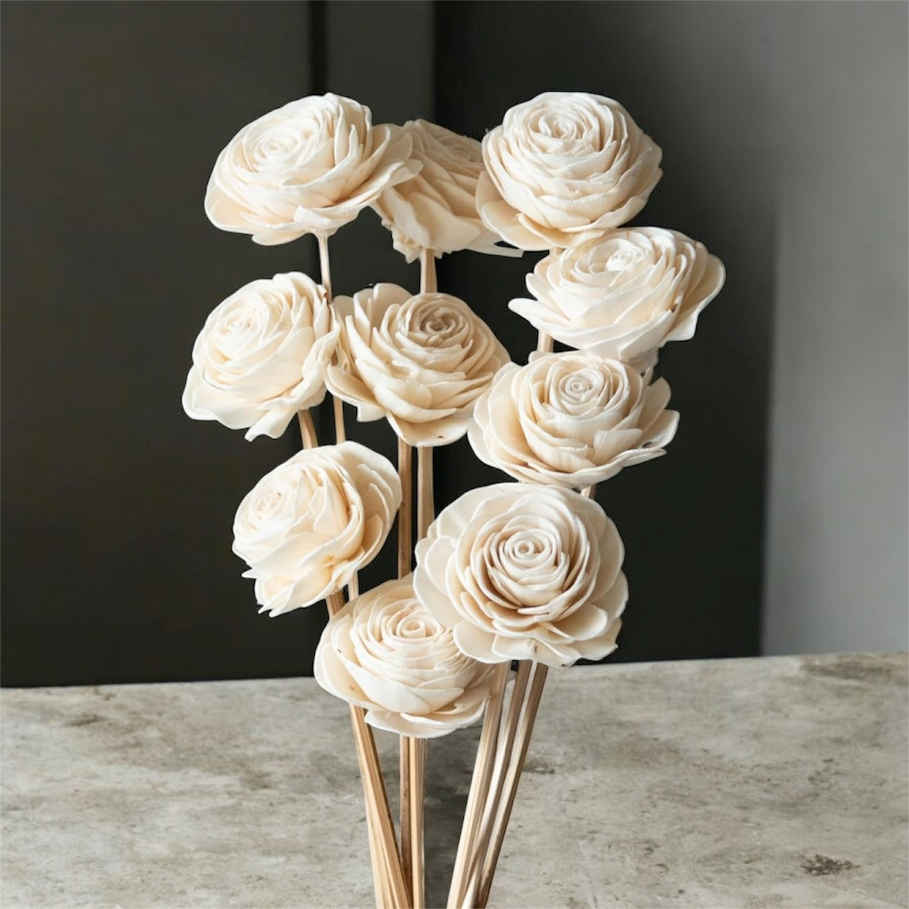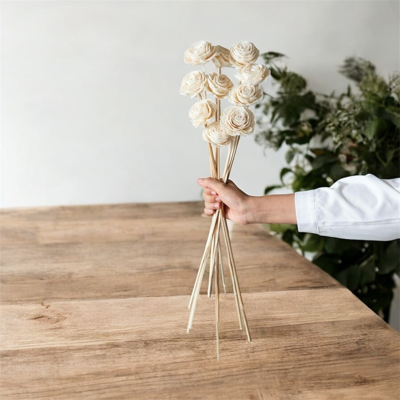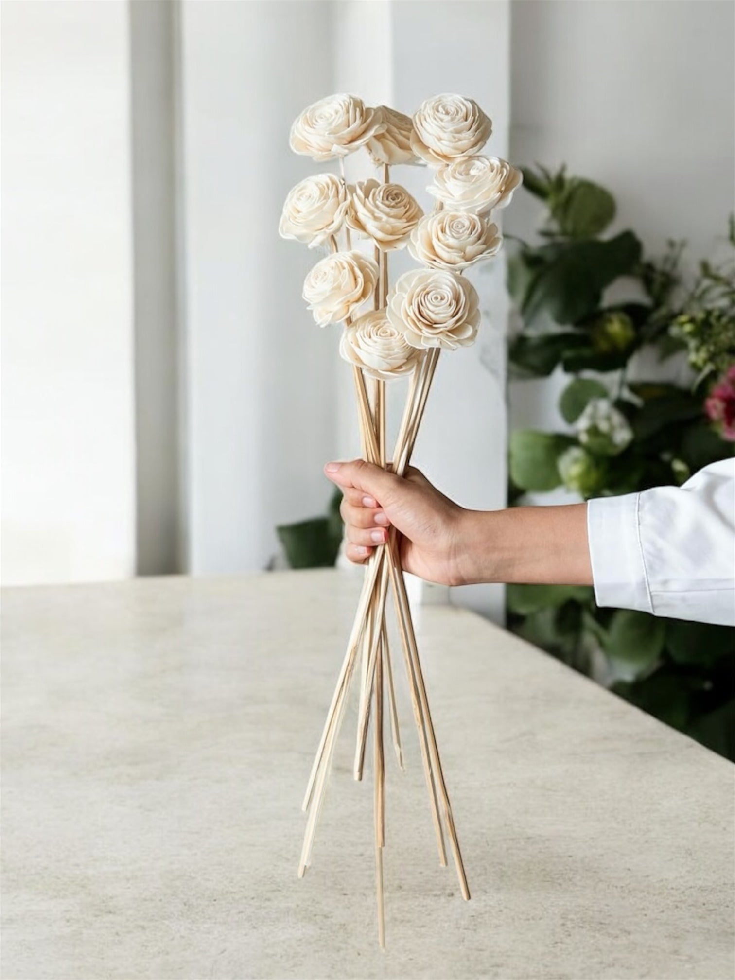 Our Flowers are handcrafted, blooms made from the soft, woody bark of the Aeschynomene aspera plant. The white Bloom Flower is 8 cm in Width and the stick is 45 cm in Height. This is a completely natural & eco-friendly decor product which lasts for at least 1 year. Keeping the fragile nature of the bunch in mind, it is carefully handpicked and packed for safe delivery.